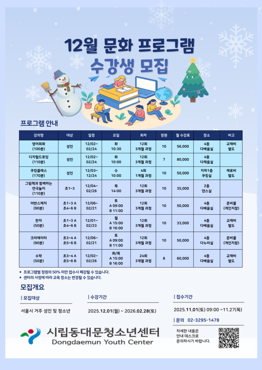 - 이전글12월 프로그램 접수안내2025.11.18