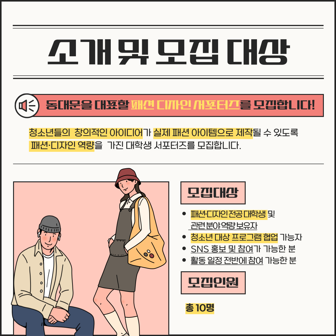 기획·제작·전시 전 과정을 함께하는 패션 디자인 서포터즈 2기를 모집합니다.