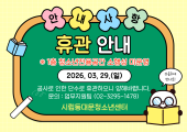• 안녕하세요, 시립동대문청소년센터입니다.3/29(일),공사로 인한 단수로 휴관하오니 양해바랍니다.(* 1층 청소년전용공간 안녕! 소행성 미운영❌)감사합니다.